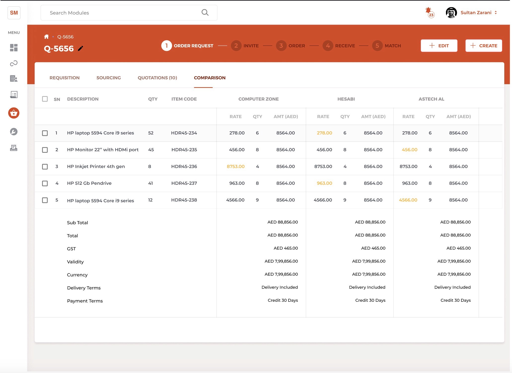 Use SupplyMate to compare quotations and finalize the best options for your business.